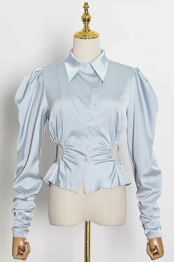 Have all eyes on you in this must-buy blouse. Featuring a satin material with a ruched waist, long sleeves, cut outs, and puff sleeves, what’s not to love doll? Team this with mom jeans and heeled boots for a day out!