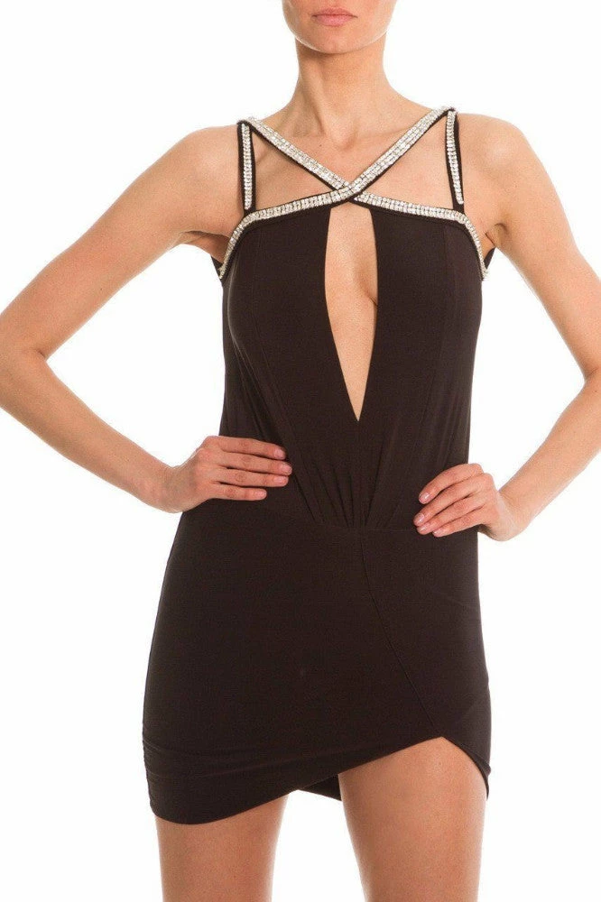 Vie Sauvage Black Dress With Crystal Straps Birthday Suit