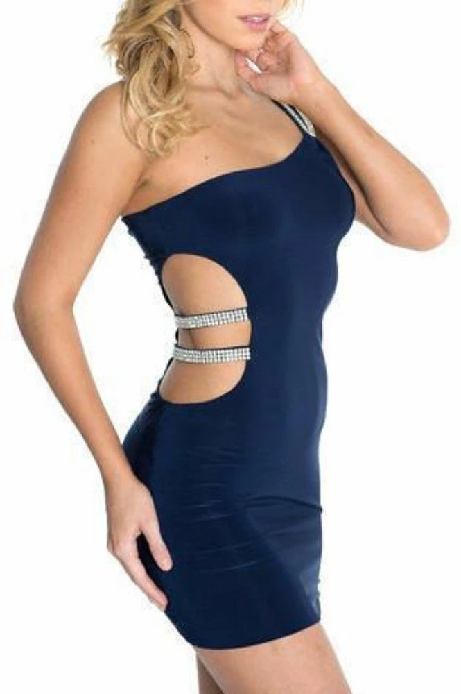 Vie Sauvage Taylor One Shoulder Cut Out Crystal Mini Dress
